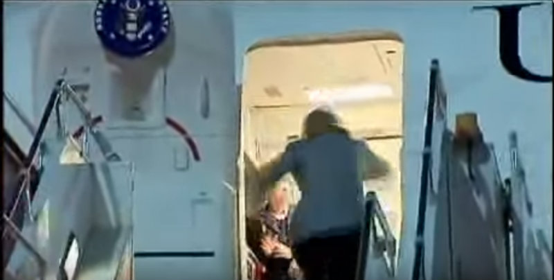 The video has become a great favorite on Tea Party Twitter in recent weeks, where the speculation is that Clinton, then visiting Yemen in her official capacity as the Secretary of State, was probably drunk. Or a skank. Both, maybe.