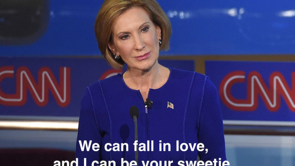 “Both Carlys (who couldn’t be more different!) are having a moment simulatenously,” said the Tumblr’s creator Patrick D’Arcy, a New York-based writer who is very coincidentally also my friend. “Fiorina has a severity about her, and she’s been so serious in the debates, so it’s funny to contrast her with Carly Rae Jepsen’s bubblegum pop lyrics about looking for and being in love.”