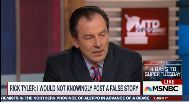 In a bizarre, blindingly fast revolving-door situation, Rick Tyler, the Ted Cruz campaign spokesperson who was fired Monday for lying about how Marco Rubio feels about the Bible is now a “political contributor” for MSNBC, appearing for the first time Friday afternoon. Who...who asked for this?