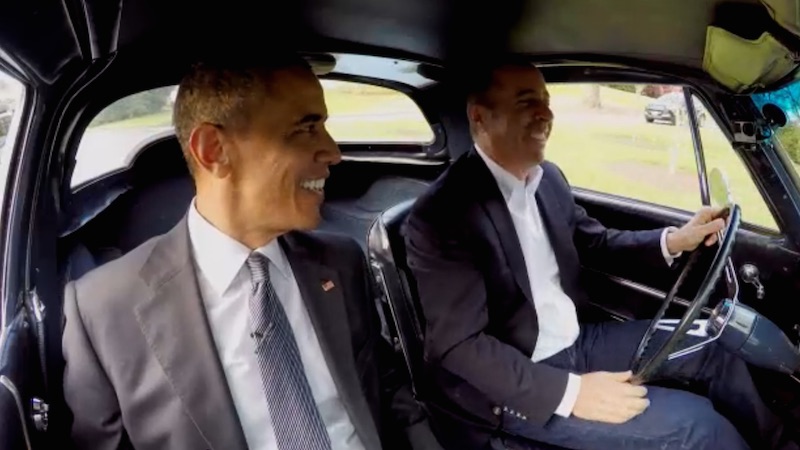 On Thursday, a mysterious content source called Crackle released the premiere of the seventh season of Jerry Seinfeld’s Comedians in Cars Getting Coffee, in which Seinfeld gets coffee in a 1963 Corvette Stingray with amateur comedian Barack Obama. The reunion reads like two friends from high school (who are now both grotesquely rich and powerful) having a cute reunion.