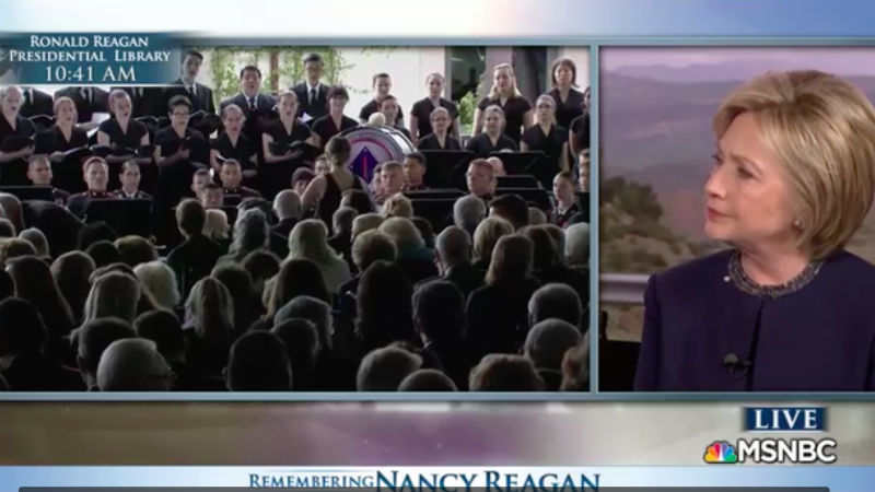 Hillary Clinton, in trying to say something nice about the late First Lady Nancy Reagan, instead said something highly inaccurate. During an MSNBC interview Friday, Clinton praised Reagan for her HIV and AIDS work, when the Reagan administration was notoriously slow and detrimental to fighting the disease early on.